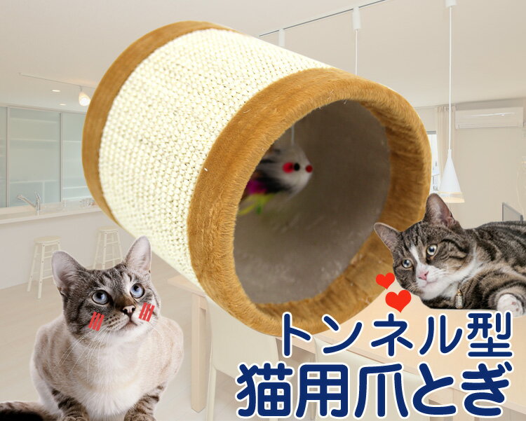 【キャッシュレス5%還元】爪とぎ 猫 トンネル型 Dタイプ 麻 縄巻き ねずみのおもちゃ付き ねこ 爪とぎ トンネル 遊び 送料無料